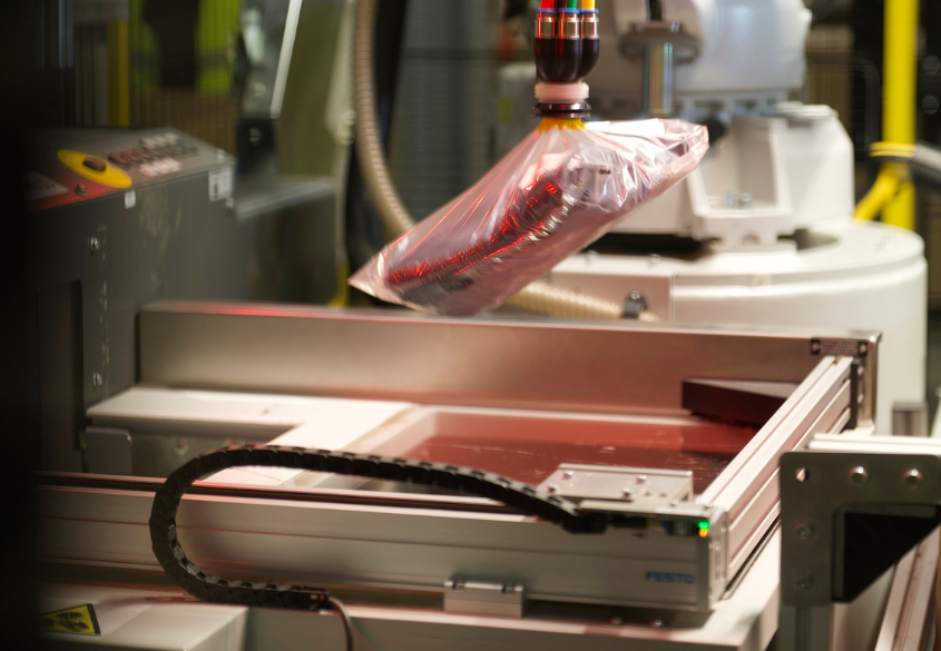 Om dit te verhelpen, maakt de Shoebox Picker gebruik van een combinatie van software en hardware. Geavanceerde software voor beeldverwerking stuurt de fysieke hardware aan. Hierdoor kan de robot het specifieke producttype en de oriëntatie ervan in real-time ‘herkennen’ en automatisch de grijptechniek en picktechniek aanpassen aan elk individueel item. De robots zijn uitgerust met op maat gemaakte grijpers die de doos aan twee kanten vasthouden, zodat het deksel tijdens het transport intact blijft.